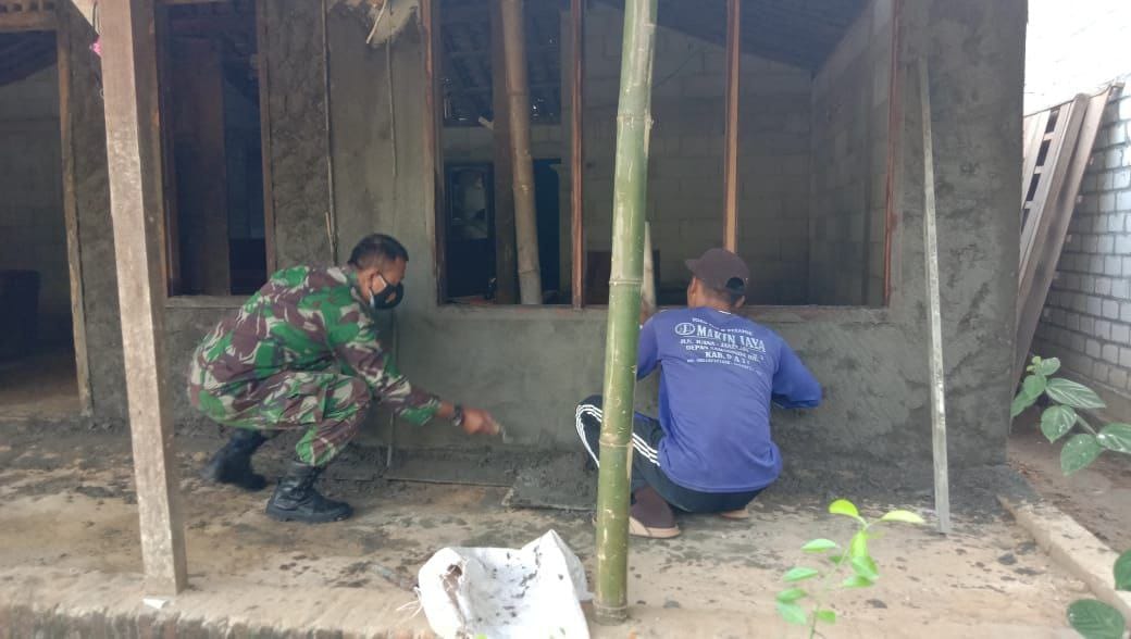 Pati – Pembangunan RTLH bagi warga kurang mampu merupakan salah satu kegiatan fisik Program TMMD ( TNI Manunggal Membangun Desa ) Reguler ke 111 Kodim 0718/Pati di Desa Tamansari, Kecamatan Jaken, Kabupaten Pati, pembangunan RTLH (rumah tidak layak huni).