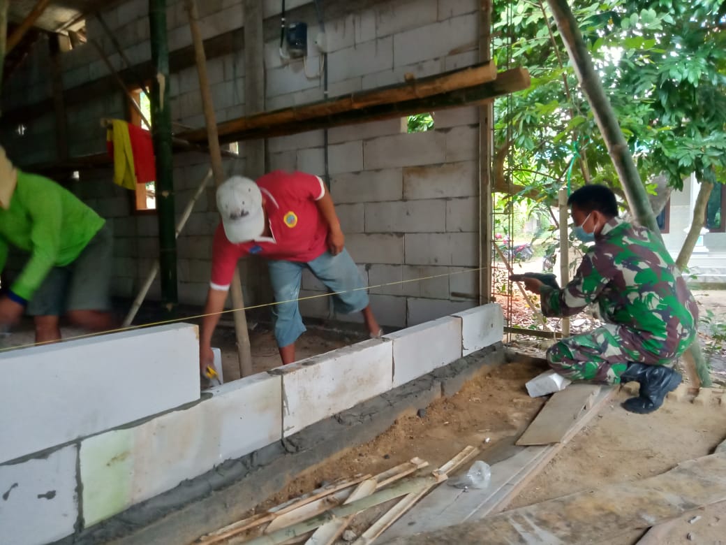 Dirumah Sunarman (54) terlihat beberapa orang membantu merehab rumah miliknya yang saat ini dalam proses pembangunan tembok rumah menggunakan bata ringan (hebel).