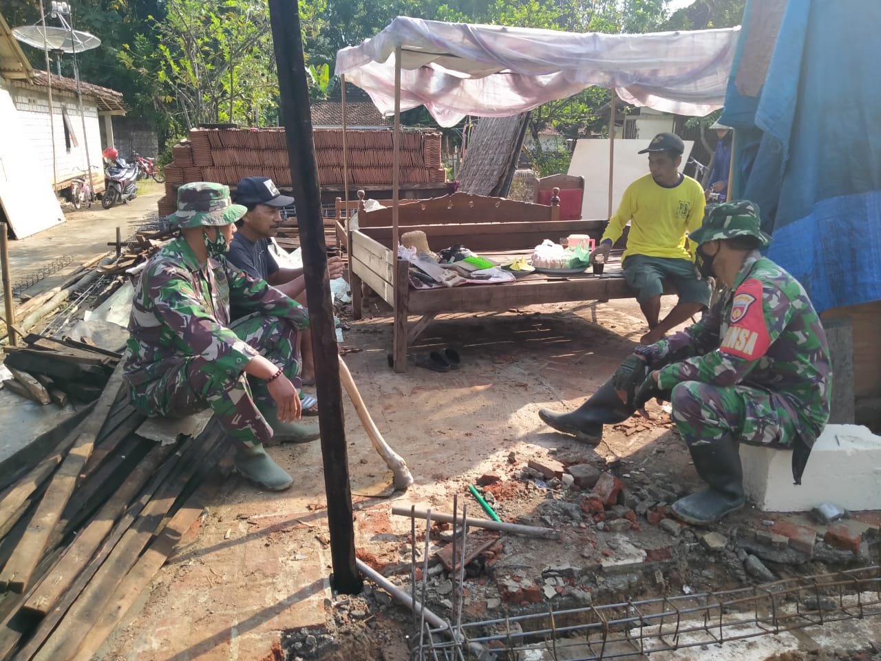 Mereka berkumpul jadi titik, di Sudut depan rumah milik Sapari(60), yang saat ini sedang dikerjakan dalam program Rumah Tidak Layak Huni (RTLH) TMMD Ke 111 Kodim 0718/Pati. Sabtu,(12/06/2021).