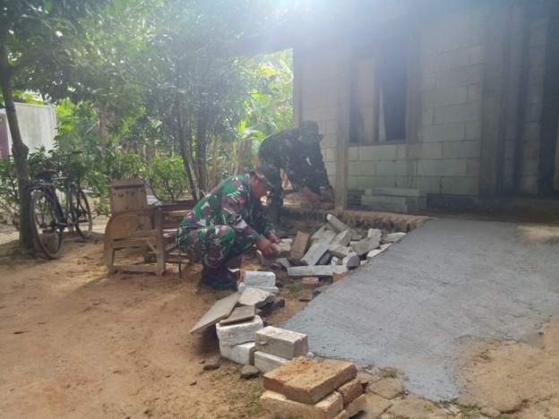PATI – Pembangunan RTLH bagi warga kurang mampu merupakan salah satu kegiatan fisik program TNI Manunggal Membangun Desa (TMMD) Kodim 0718/ Pati di Desa Tamansari,Kecamatan Jaken, Kabupaten Pati. Hingga hari ke-14 pelaksanaan TMMD, pembangunan RTLH (Rumah Tidak Layak Huni) Milik Sumardi telah mencapai tahap 60 persen.