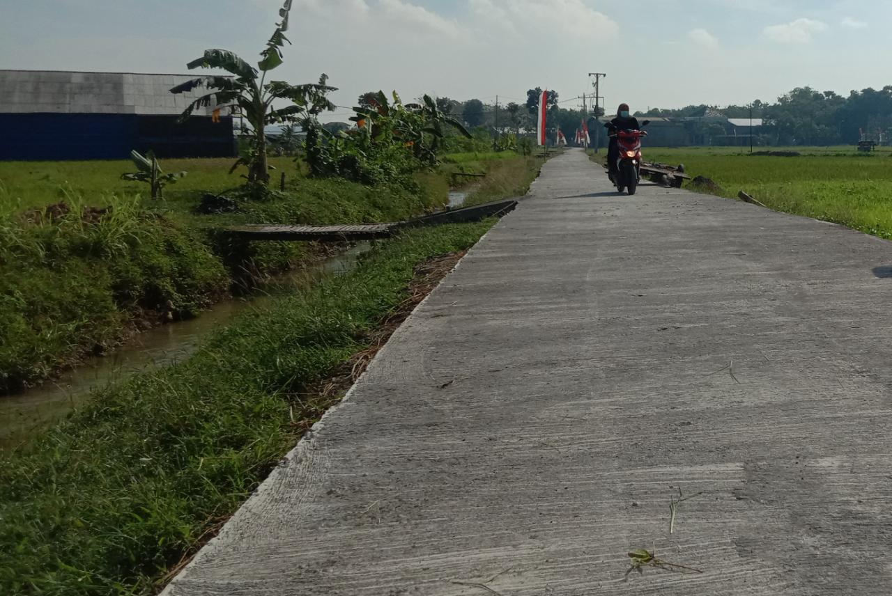 “Saya kemarin sudah mencoba jalan yang sudah dicor ini untuk pergi ke sawah, saya merasa lebih nyaman, lebih mantap,” tutur Ririn.