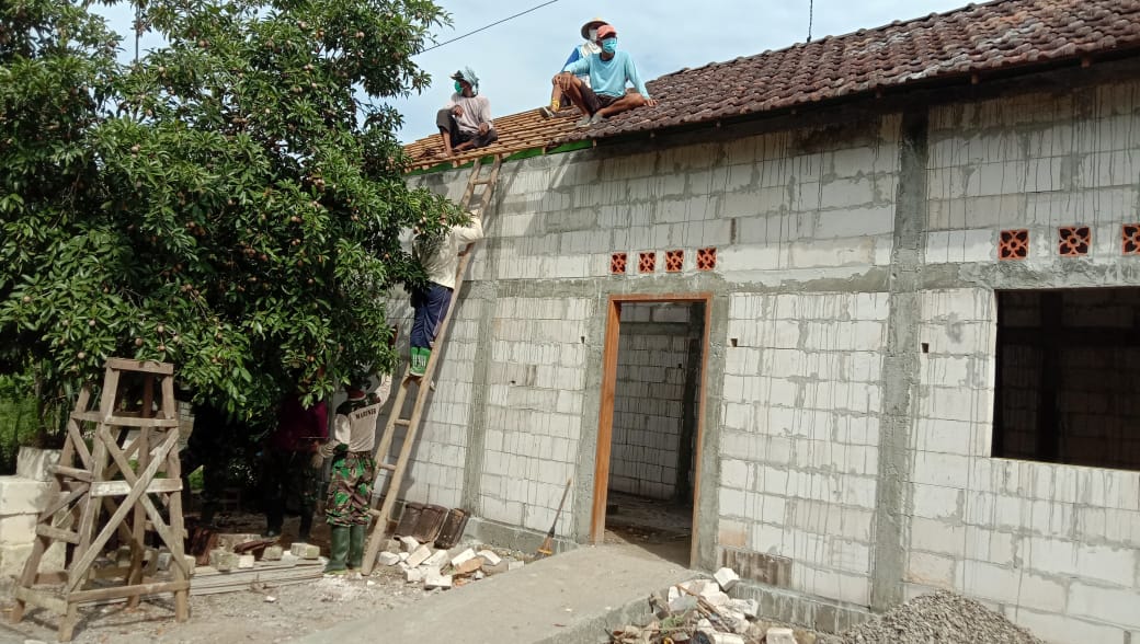 Menurut Koptu Jefry, pengerjaan rehab RTLH milik bapak Mudadi saat ini sedang fokus pada bagian atap rumah yaitu pemasangan genteng. Dikatakan oleh Koptu Jefry, itu menandakan pengerjaan rehab RTLH akan segera selesai.