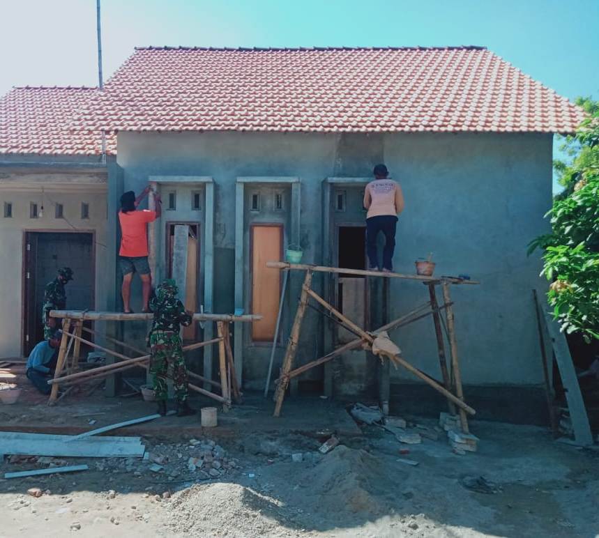 Pati – Anggota Satgas TNI Manunggal Membangun Desa (TMMD) Reguler Ke-111 Kodim 0718/Pati bersama masyarakat desa sudah selesai mengerjakan pengacian dinding depan Rumah Tidak Layak Huni (RTLH) milik Sapari (60), warga Dusun Pandahan Rt.01 Rw.02 Desa Tamansari, Kecamatan Jaken, Kabupaten Pati.
