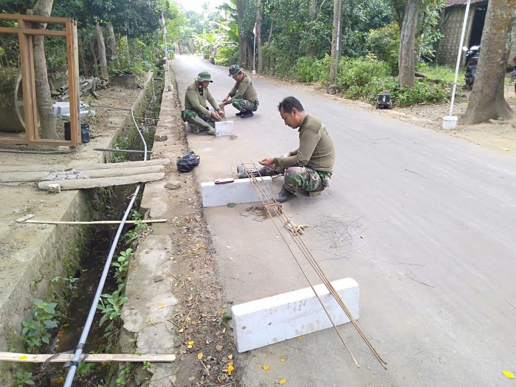 Seperti yang dilakukan Sertu Fauzi salah satu anggota Marinir (Angkatan Laut) yang tergabung dalam satgas TMMD ke 111 bersama rekan kerja merangkai besi kolom behel untuk balok Slof pengunci yang akan di gunakan sebagai rangkaian pemasangan atap.