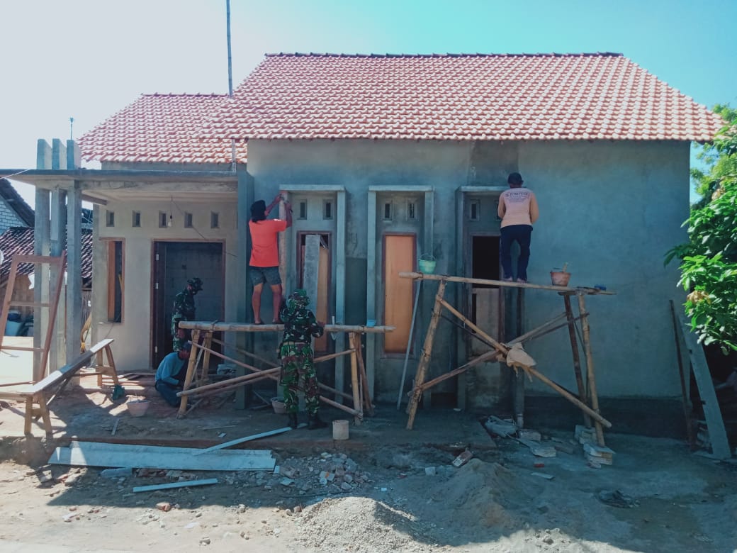 “Setelah beberapa hari Satgas TMMD dibantu masyarakat desa melaksanakan pengerjaan pengacian dinding rumah bagian depan, akan segera dilanjutkan dengan pengecatan,”ucap Sertu Sunarto.