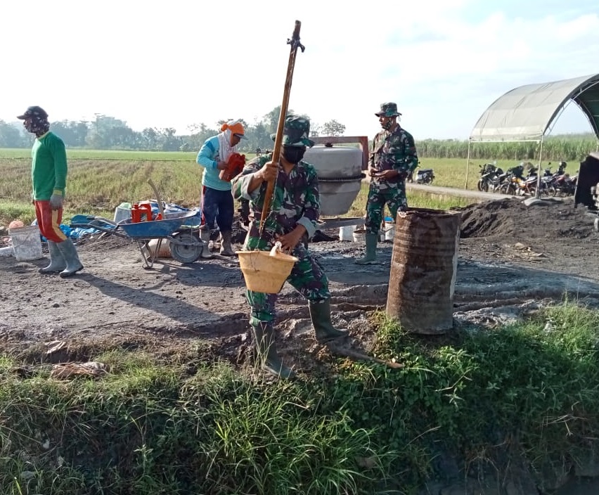 PATI – Meski mesin penyedot air rusak, namun pekerjaan pengecoran jalan di Desa Tamansari, Kecamatan Jaken,
