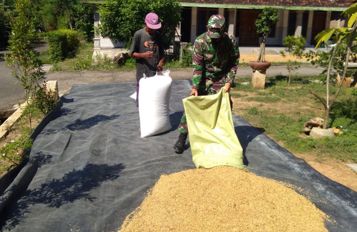 Kegiatan membantu warga menjemur padi dilakukan Irwanto disela-sela kesibukannya dalam mengerjakan sasaran fisik TMMD berupa pengecoran jalan pertanian sepanjang 1.450 meter yang saat ini hampir selesai dikerjakan oleh anggota Satgas TMMD Reguler Kodim Pati dan warga masyarakat setempat.