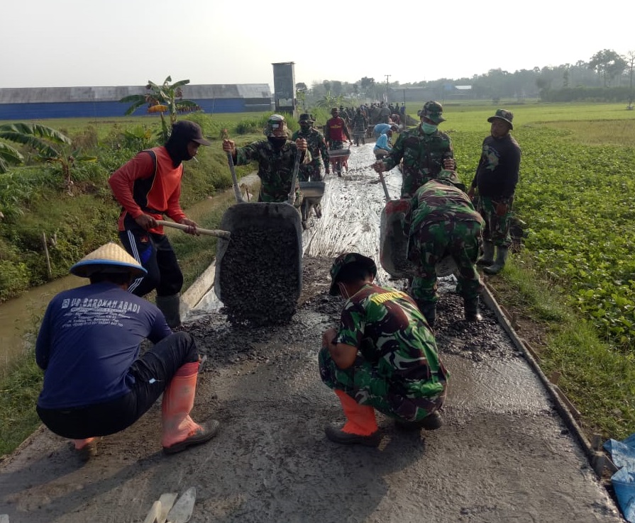Pati – Pembangunan jalan betonisasi yang dilaksanakan di Desa Tamansari, Kecamatan Jaken, Kabupaten Pati, merupakan program TMMD
