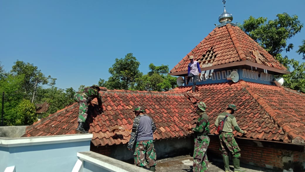 Sertu Sumarno mengatakan, di sela-sela kegiatan dirinya dan anggota satgas lain juga ikut bergotong royong rehab masjid progres penurunan genteng atau atap Masjid Baitul Muttaqin Desa Tamansari.