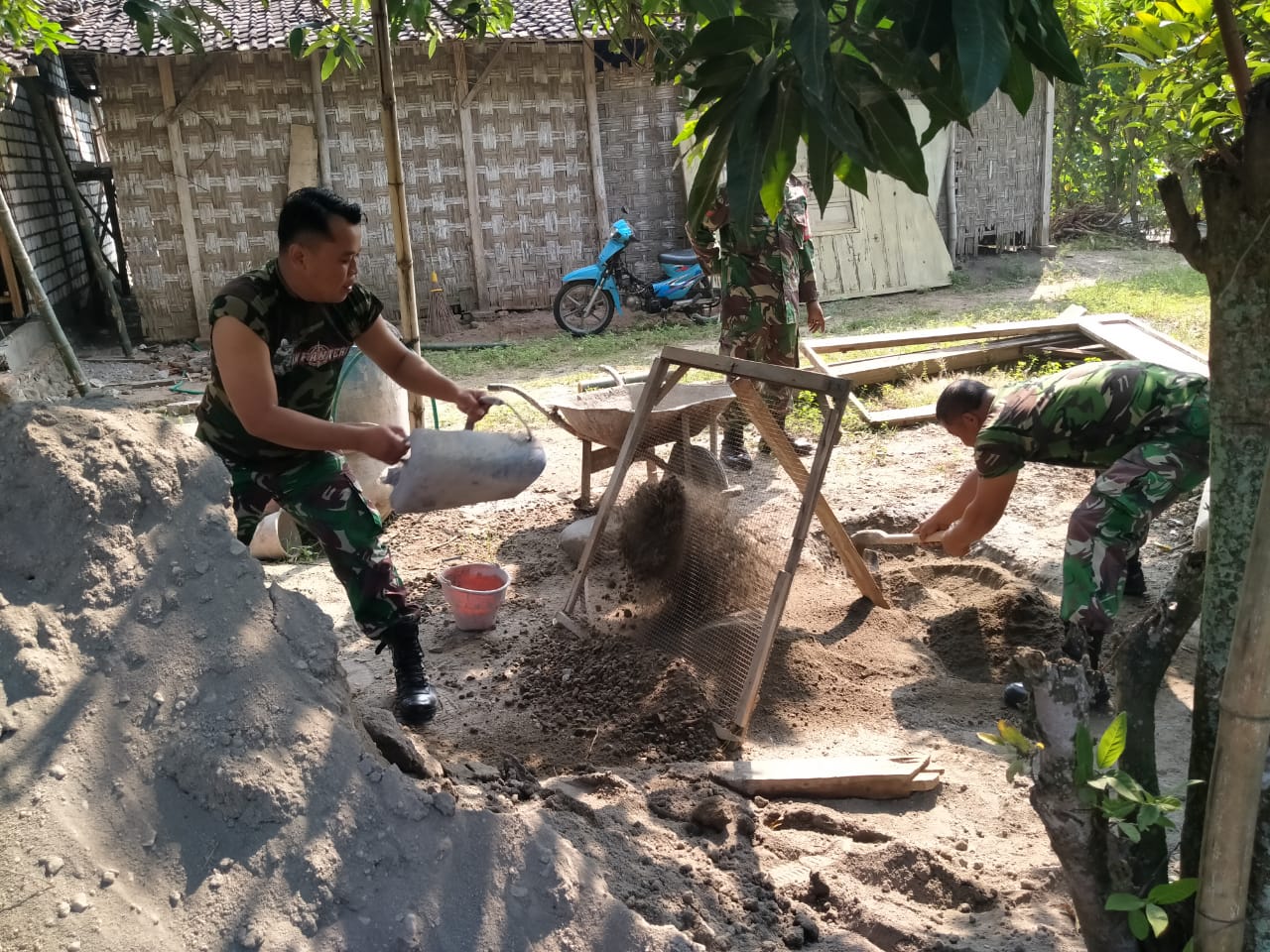Pati- Kegiatan awal pembangunan Rumah Tidak layak Huni (RTLH) TMMD ke 111 Kodim 0718/Pati, Sersan Dua TNI Andika(36) ngayak pasir. Ngayak pasir artinya adalah memisahkan partikel yang besar dengan partikel yang kecil atau pasirnya menggunakan kawat ram ukuran halus yang bingkai dengan kayu secara improvisasi.