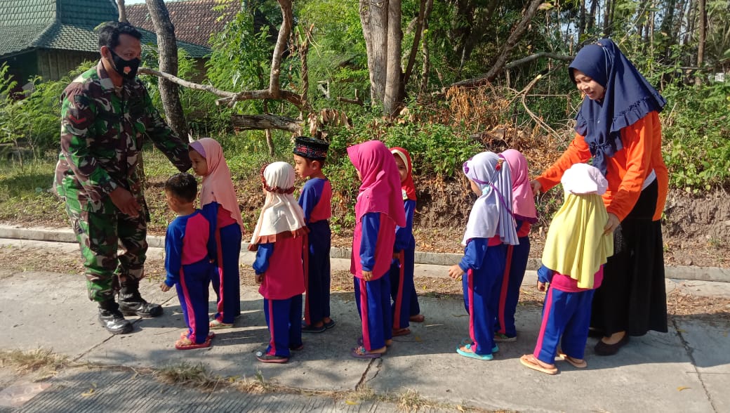Pati – Banyak cara guna meningkatkan kedisiplinan dalam diri siswa khususnya pada anak usia dini. Selain melakukan pendidikan moral, hal itu bisa dilakukan dengan pendekatan dari hati ke hati Seperti yang dilakukan salah satu anggota Satgas TMMD ke 111 Kodim 0718/Pati Kopda Bowo Sulisttyanto di waktu pagi hari memberikan materi pelatihan tentang Peraturan Baris Berbaris (PBB) kepada siswa siswi PAUD, Desa Tamansari Kecamatan Jaken. Minggu (13/06/2021).