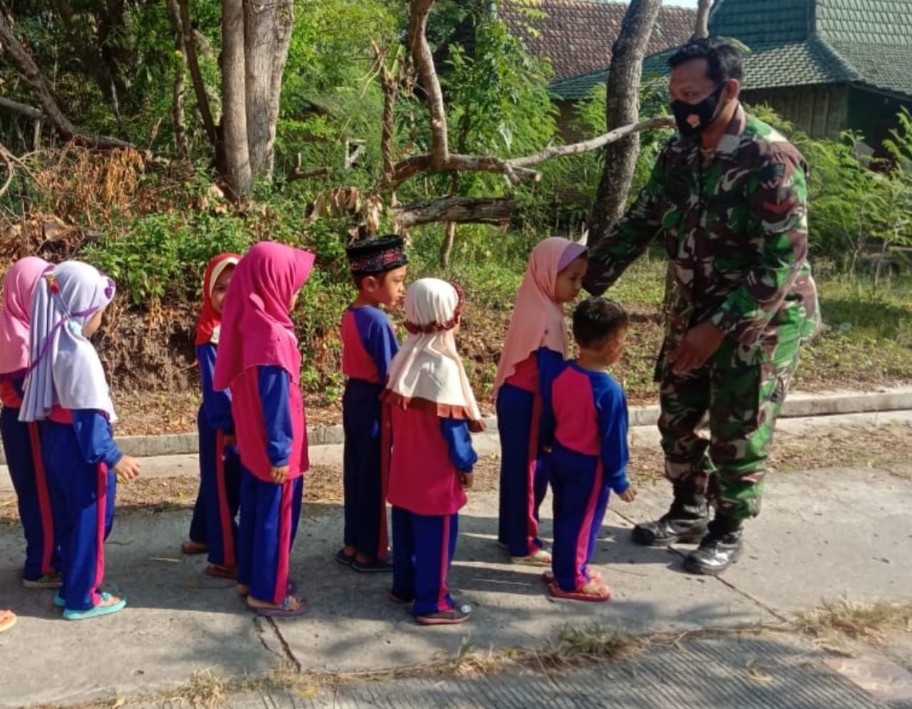 Pati – Banyak cara guna meningkatkan kedisiplinan dalam diri siswa khususnya pada anak usia dini. Selain melakukan pendidikan moral, hal itu bisa dilakukan dengan pendekatan dari hati ke hati Seperti yang dilakukan salah satu anggota Satgas TMMD ke 111 Kodim 0718/Pati Kopda Bowo Sulisttyanto di waktu pagi hari memberikan materi pelatihan tentang Peraturan Baris Berbaris (PBB) kepada siswa siswi PAUD, Desa Tamansari Kecamatan Jaken. Minggu (13/06/2021).