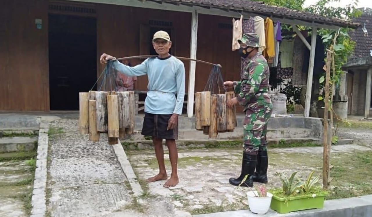 Ya Serda Muslim salah satu anggota satgas TMMD di sela waktu istirahat pergunakan waktunya untuk membantu panen legen Sukirman (63) Warga Desa Tamansari, RT.01/Rw.02 Kecamatan Jaken, Kabupaten Pati.