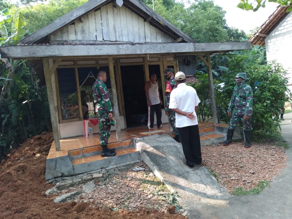 Pati – Anggota Satgas TMMD Kodim 0718/Pati, Kapten Kav Budi Karyadi, SE beserta Staf Teritorial Kodim 0718/Pati mengecek rumah milik Asmuri (65) warga Dusun Kalimati, Desa Tamansari, Kecamatan Jaken yang menjadi sasaran Rumah Tidak Layak Huni (RTLH) program TMMD Reguler Ke-111 Kodim 0718/Pati. Kamis,(03/06/2021).