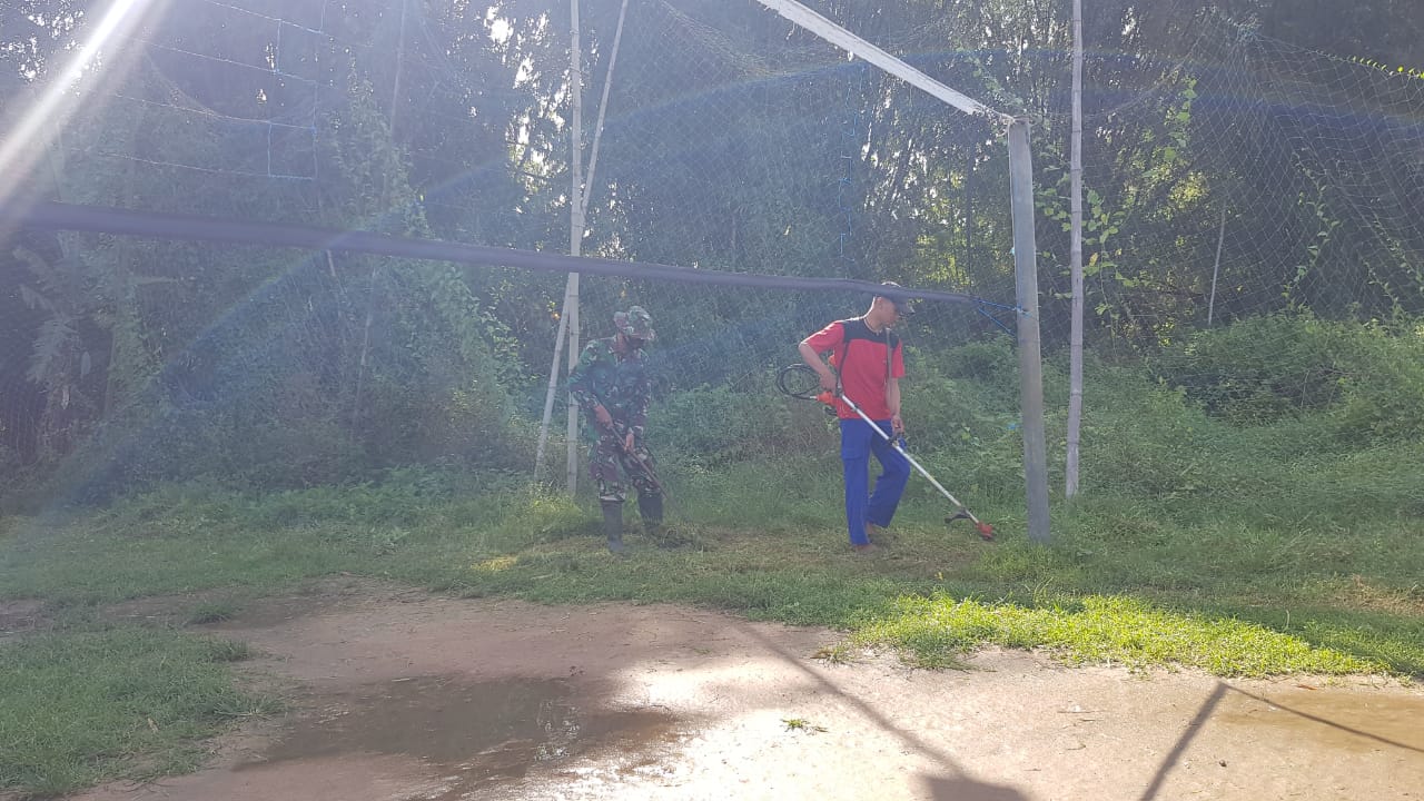 Sementara itu Sertu Kumedi yang turut membantu kegiatan pemuda karang taruna mengatakan jika setelah selepas bekerja ia turut membantu mengoprasionalkan mesin rumput. “Saya ikut memotong rumput dengan mesin ini agr membantu mempercepat pembersihan lapangan voly, semoga besok sore sudah bisa digunakan untuk olahraga,” katanya sambil menggendong mesin pemotong rumput.