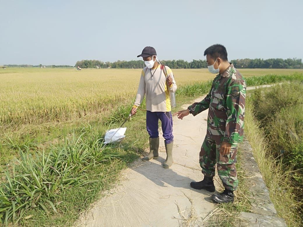 Dengan adanya TMMD di desa Tamansari tersebut, Serda Sukur, anggota ramil 16 Jaken sebagai anggota satgas TMMD ke 111 mendatangi salah satu warga, Darmin (53), masyarakat yang sedang menyemprot rumput yang menutupi badan jalan.