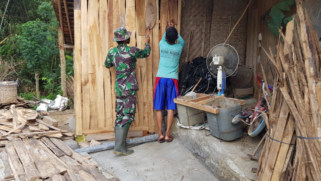“Saya membantu pak Tiyok disela istirahat bekerja, papan kayu kandang pak Tiyok yang sudah rapuh diganti yang baru ,” ucap Praka Abdul Hamid.