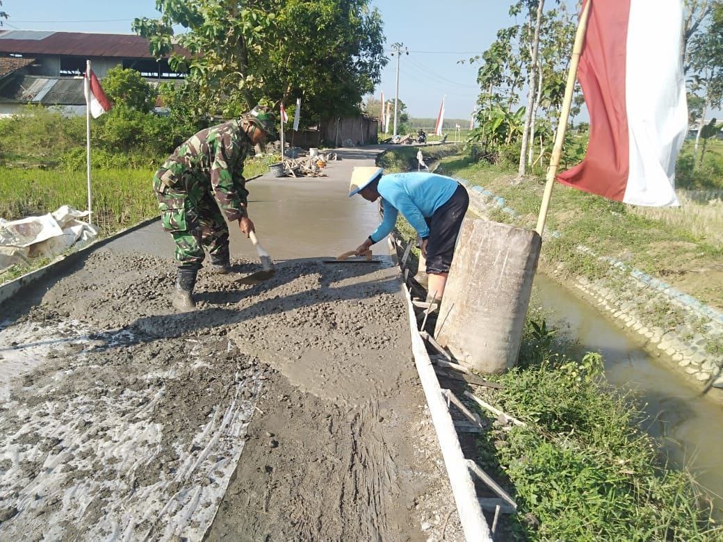 Dalam program TMMD Reguler ke-111 Kodim 0718/Pati, masih difokuskan pembangunan jalan beton. Satgas TMMD bersama warga saling bergotong-royong dan bergantian menyiapkan material campuran untuk bahan cor .