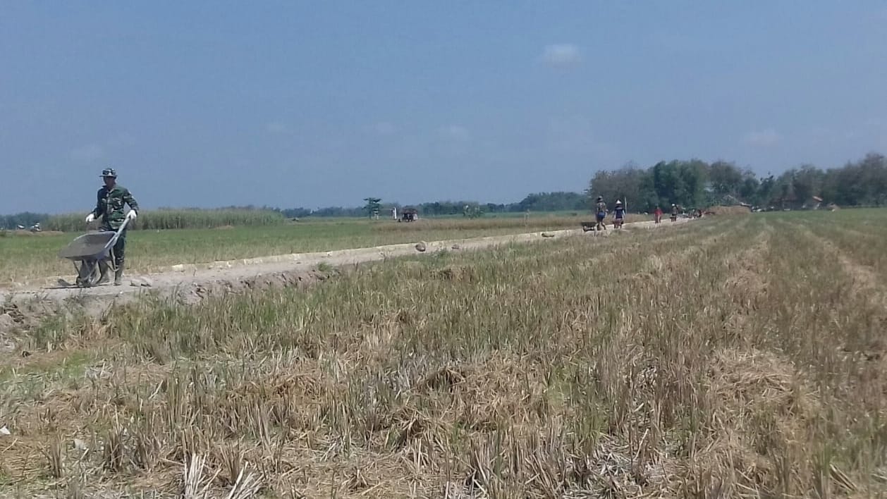 Begitulah yang dilakukan oleh Satgas TMMD bersama warga yang terlibat dalam pembangunan jalan betonisasi dalam program TNI Manunggal Membangun Desa (TMMD) Kodim 0718/Pati Reguler Ke-111, di Desa Tamansari Kecamatan Jaken Kabupaten Pati.