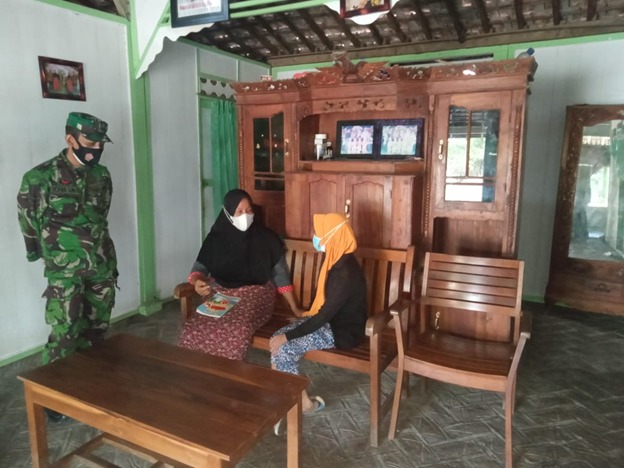 PATI – Anggota Satgas TMMD Ke 111 Kodim 0718/Pati, di samping mensukseskan sasaran fisik, juga terus aktif mengajak warga untuk meningkatkan kesadarannya guna mencegah penyebaran Covid-19, di Desa Tamansari Kecamatan Jaken Kabupaten Pati.