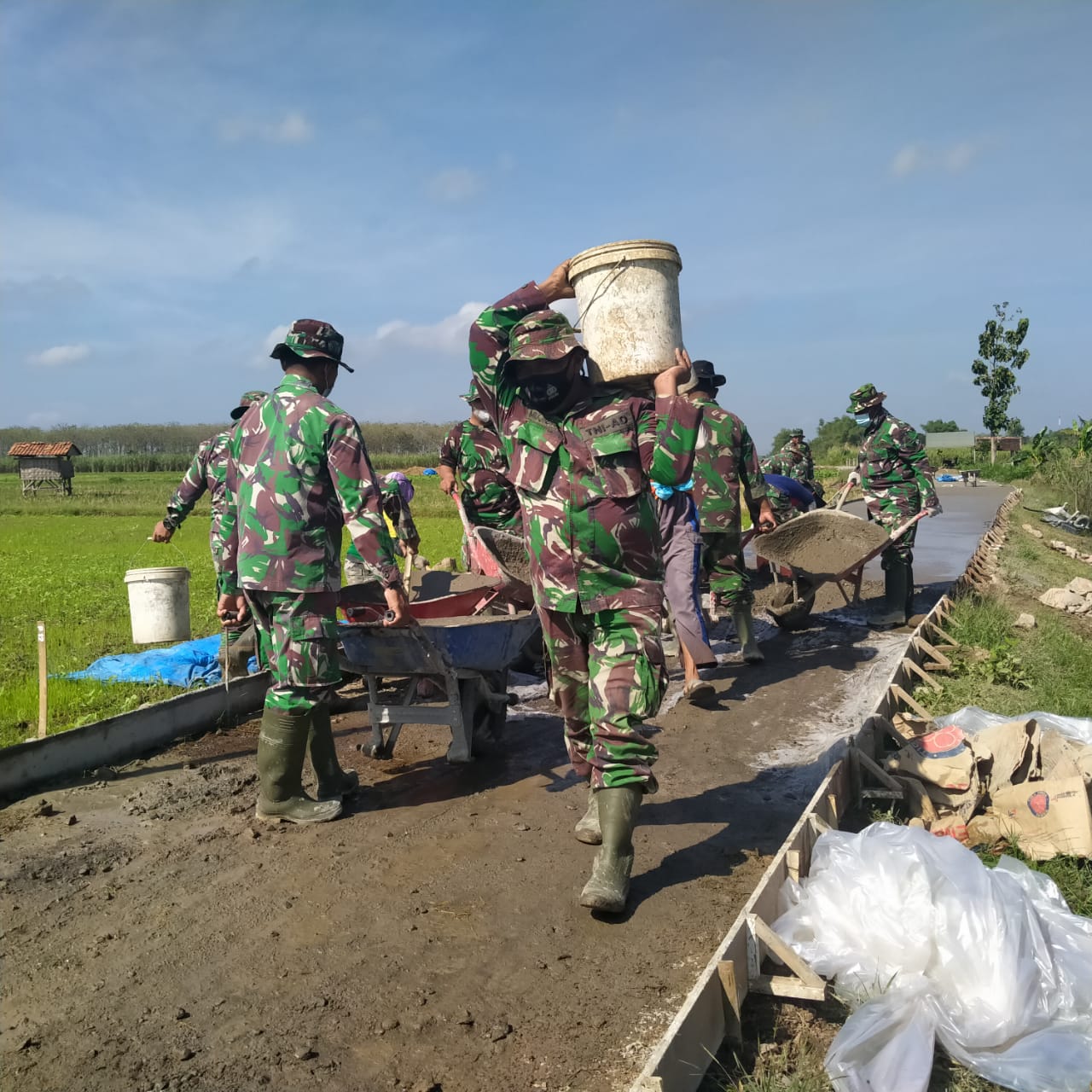 Ia juga mengatakan, demi masyarakat Desa Tamansari,TNI bekerja tidak mengenal waktu untuk mengejar penyelesaian target yang telah ditentukan.