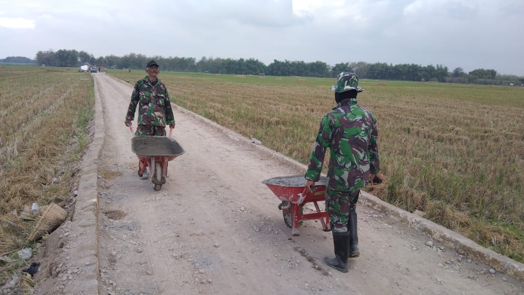 PATI – Di lokasi TMMD Reg ke-111 Kodim 0718/Pati, di Desa Tamansari, Kecamatan Jaken, Kabupaten Pati, tampak semua pihak dari Satgas TMMD atau pun warga melakukan pengerjaan kegiatan fisik pengecoran jalan terus di kebut,Jumat (25/06/2021).