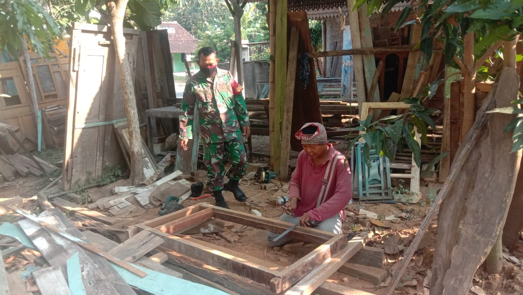 Sertu Sujadi datang dengan sangat antusias mendampingi, Paijan (53) tukang kayu inti yang dipercaya untuk mengerjakan perehaban RTLH di Desa Tamansari,
