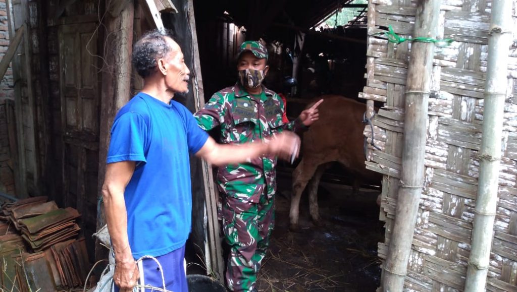 Seperti yang dilakukan anggota satgas TMMD Sertu Suparyono yang terlihat mengamati bangunan rumah milik salah satu warga yang mulai lapuk dimakan usia untuk selanjutnya akan dibongkar hari ini juga. Rabu,(02/06/2021).