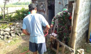Seperti yang dilakukan anggota satgas TMMD Sertu Suparyono yang terlihat mengamati bangunan rumah milik salah satu warga yang mulai lapuk dimakan usia untuk selanjutnya akan dibongkar hari ini juga. Rabu,(02/06/2021).