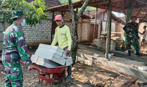 Seperti yang dilakukan anggota satgas TMMD Sertu Suparyono yang terlihat mengamati bangunan rumah milik salah satu warga yang mulai lapuk dimakan usia untuk selanjutnya akan dibongkar hari ini juga. Rabu,(02/06/2021).