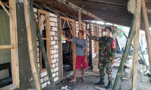Seperti yang dilakukan anggota satgas TMMD Sertu Suparyono yang terlihat mengamati bangunan rumah milik salah satu warga yang mulai lapuk dimakan usia untuk selanjutnya akan dibongkar hari ini juga. Rabu,(02/06/2021).
