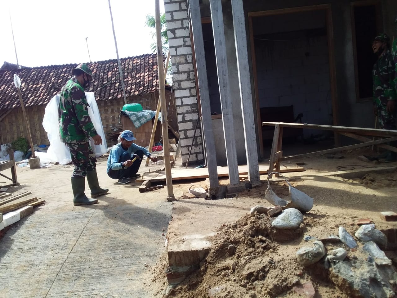 Tampak terlihat pada rumah Rusnawi saat ini, rumahnya sudah terlihat berdiri kokoh meskipun masih belum selesai pengerjaanya. Sertu Hardiyanto mengatakan jika hari ini rencananya satgas TMMD bersama masyarakat akan melaksanakan pekerjaan plesteran pada dinding temboknya sehingga penyiapan alat peralatan diantaranya Jedar, ondrong, cetok dan roskam dan sebagainya disiapkan.
