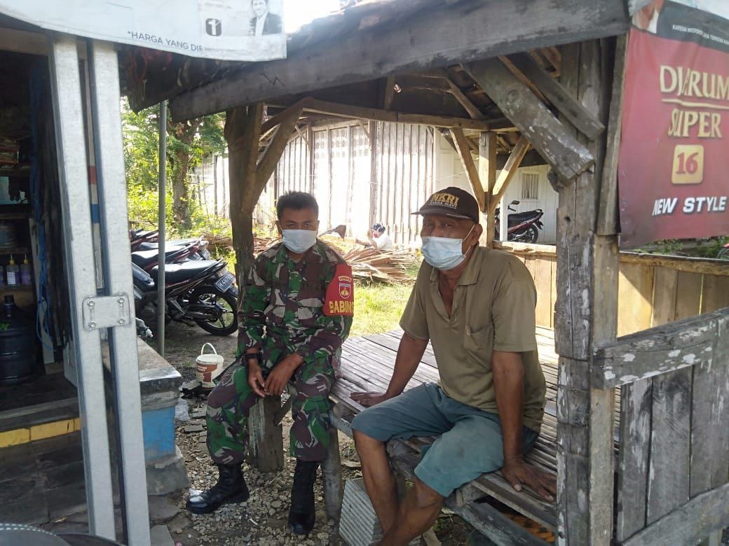 Pati – Lewat Komunikasi sosial yang di laksanakannya, personil satgas TMMD 111 Kodim 0718/Pati, terus Edukasi warga untuk tetap waspada penularan Virus Covid 19 dengan selalu patuh anjuran Pemerintah taat Protokol kesehatan,(13/06/2021).