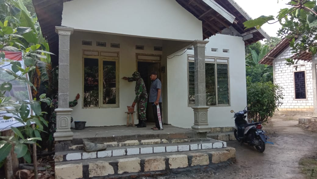 ”Anggota satgas TMMD bersama warga masyarakat desa selesaikan RTLH milik bapak Asmuri yang sudah proses pengecatan setelah selesai pengerjaan pembangunan,” ujar Peltu Agung Widagdo.