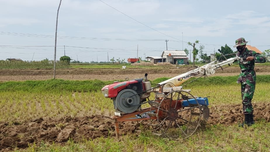 Serda Edi dalam kesempatan itu yang melihat warga sedang membajak sawah lantas membantunya. Ia menjelaskan bahwa membantu petani membajak sawah merupakan salah satu upaya khusus pendampingan TNI dalam hal ini mendukung program pemerintah mensukseskan swasembada pangan.
