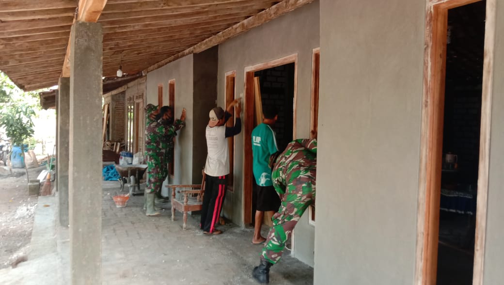 Saat ini sudah pada tahap pengacian dinding depan rumah. “Sebelum dilakukan pengecatan, kami anggota Satgas TMMD bersama warga masyarakat desa yang membantu kegiatan pembangunan Rehab Rumah Tidak Layak Huni (RTLH), saat ini sedang melakukan pengamplasan pada acian dinding rumah,” ungkap Sertu Ambyah.