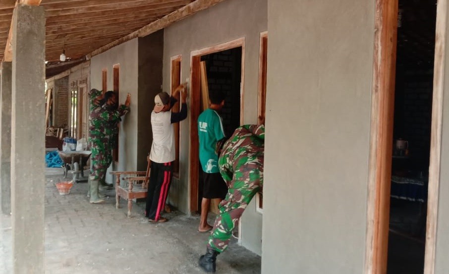 Ke-111 TA.2021 Kodim 0718/Pati, setelah acian dinding rumah kering, besok akan dilanjutkan pengerjaan pengecatan.