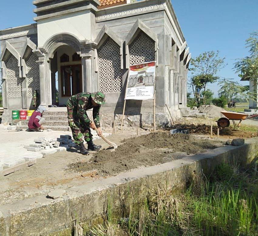 PATI – Sejumlah Anggota Satgas TNI Manunggal Membangun Desa (TMMD) 111 Kodim Pati, melakukan pekerjaan rehab Musholla di Dusun Pandaan Rt.06/Rw.02 Desa Tamansari, Kecamatan Jaken, Kabupaten Pati, lokasi TMMD