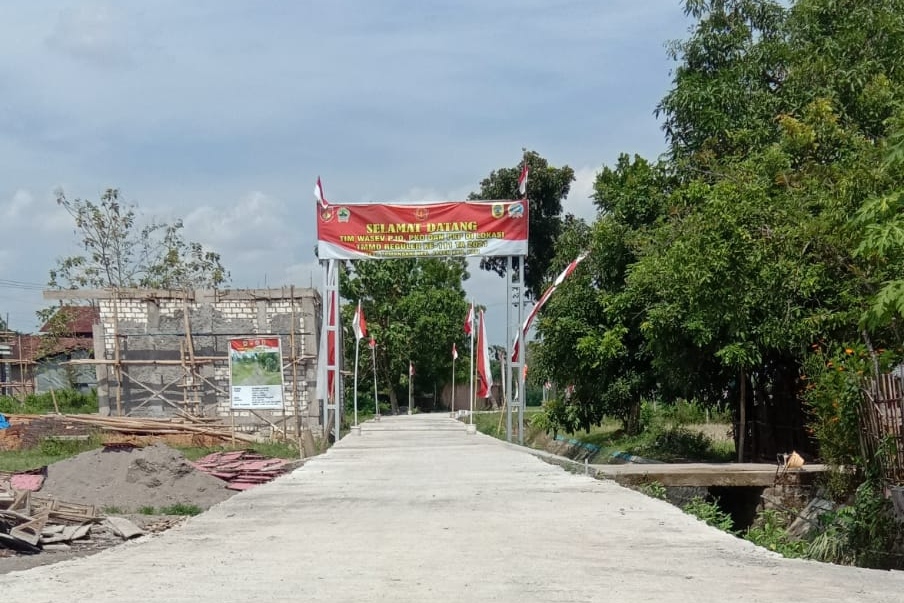 Pati – Sehari jelang upacara penutupan TNI Manunggal Membangun Desa (TMMD) Regulerke-111 Kodim 0718/Pati Tahun anggaran 2021 di Desa Tamansari, Kecamatan Jaken, Kabupaten Pati, Selasa (13/7/2021) pagi ini, semua sasaran fisik dinyatakan rampung dikerjakan 100 persen.