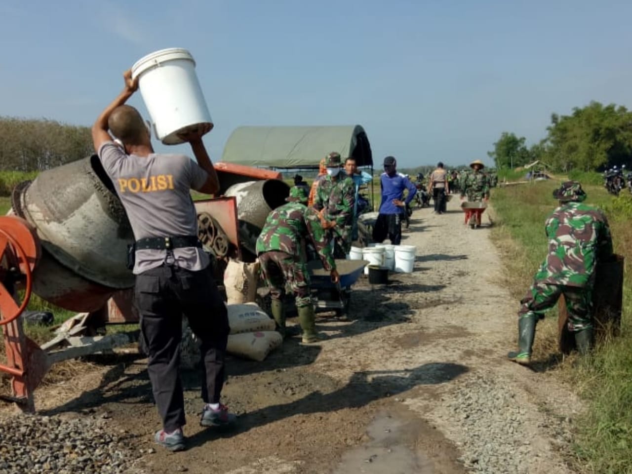 Selain Seragam Loreng, Polisi Juga Ikut Bergabung Ngecor Jalan