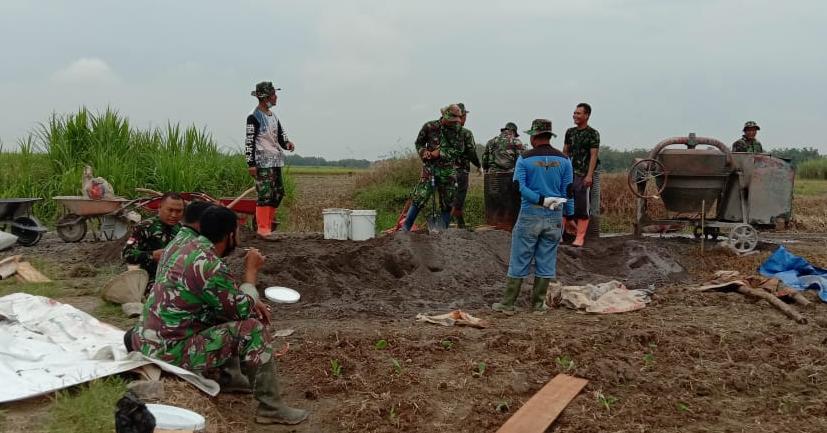 Pati – Kegiatan anggota Satuan Tugas (Satgas) TNI Manunggal Membangun Desa (TMMD) Reguler Ke-111 tahun 2021 Kodim 0718/Pati sudah memasuki hari ke tujuh, melaksanakan pengerjaan sasaran fisik Satgas TMMD di Desa Tamansari, Kecamatan Jaken, Kabupaten Pati.