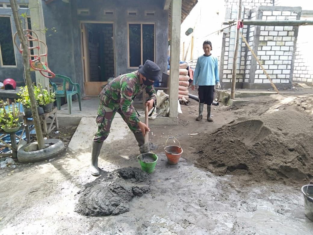Pati – Hal tersebut dilakukan Kopda Ghofur salah satu anggota satgas (TMMD) Reguler ke 111 Kodim 0718/Pati, mengaduk semen karena memasuki tahap pemlesteran dinding dalam proses pembangunan rehab RTLH di Dusun Kemiri, Desa Tamansari, Kecamatan Jaken, Kabupaten Pati.
