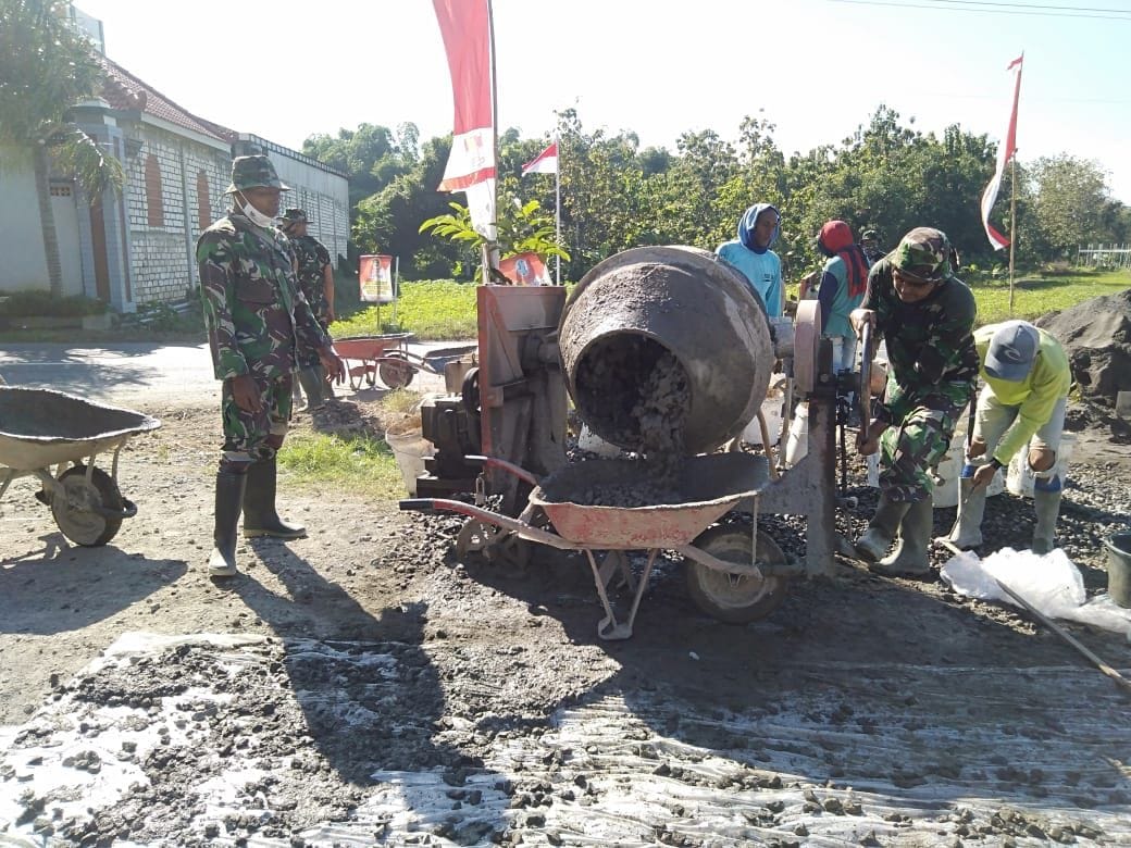 PATI – Sampai saat ini, prajurit kita masih semangat mengerjakan program TMMD. Bahkan, siang ini mereka terlihat masih semangat mengantri mengambil material adukan cor utk membangun jalan. Kami semangat bekerja demi masyarakat.