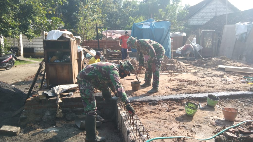 “Serda Warso menyampaikan para anggota Satgas TMMD di Desa Tamansari saling bergotong-royong dan kerja sama dalam merahap salah satu rumah warga yang tidak layak huni bekerja dengan bersama akan menghasilkan bangunan yang sempurna dan berkuwalitas,” Serda Warso.