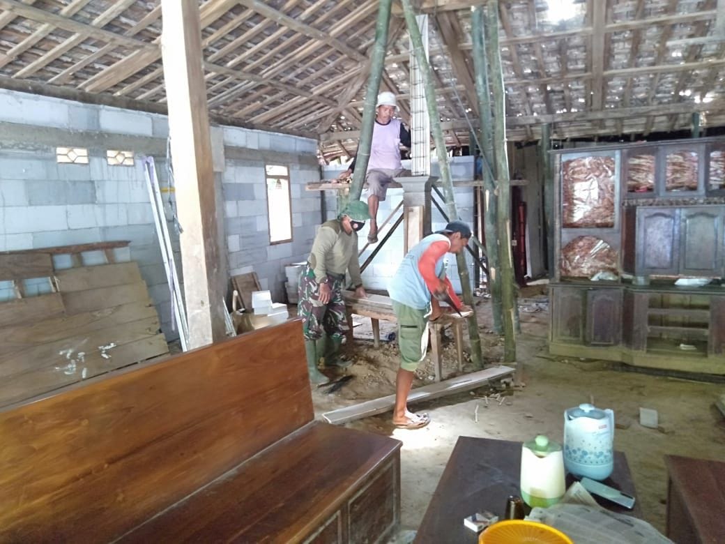 PATI – Satgas TNI Manunggal Membangun Desa (MMD) Reguler 111 Kodim 0718/Pati, tidak main main merehab Rumah Tidak Layak Huni (RTLH) milik Sripi (37), Dukuh Kemiri RT.04/RW.02, Desa Tamansari, Kecamatan Jaken, Kabupaten Pati, Jawa Tengah.