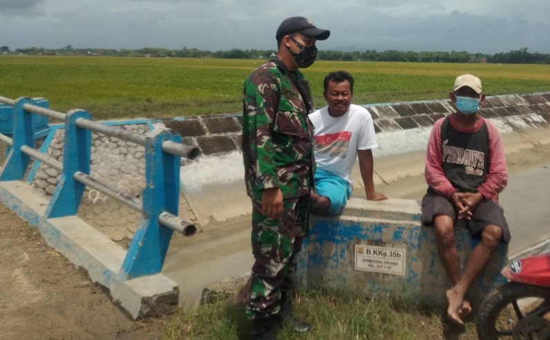 Seperti terlihat kali ini, Serda Supriyono TNI mantan anggota Satgas TMMD Reguler Kodim Pati sedang ngobrol bersama dua orang warga Desa Tamansari, terkait hasil kerja anggota Satgas saat pelaksanaan kegiatan TMMD berlangsung.