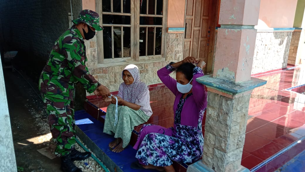 Serda Arifin Komsos dan Bagikan Masker Ke Warga Masyarakat Lokasi TMMD Reguler Ke-111