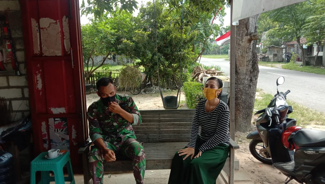 Pati – Anggota Satgas TNI Manunggal Membangun Desa (TMMD) 111 TA.2021 Kodim 0718/Pati Serda Aziz melaksanakan anjangsana untuk kegiatan Komunikasi Sosial (Komsos) dilokasi TMMD Desa Tamansari, Kecamatan Jaken, Kabupaten Pati.