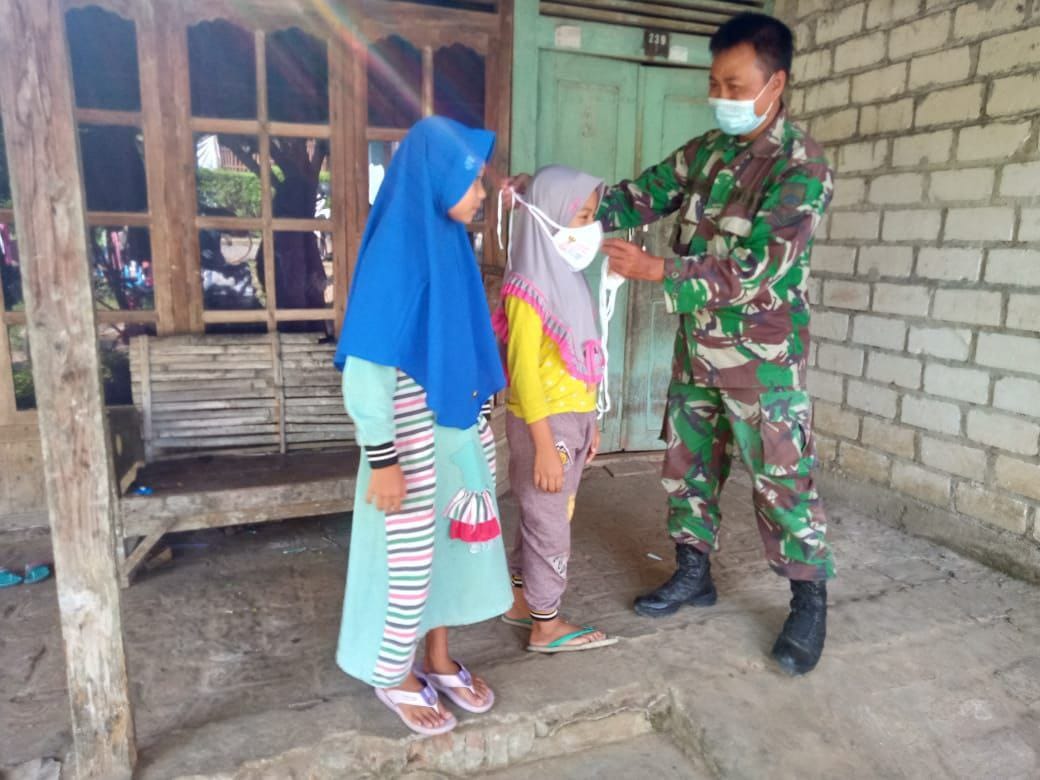 Selain pembagian masker dan sosialisasi, personel yang tergabung dalam Satgas TMMMD 111 Kodim 0718/Pati juga melakukan penyemprotan cairan disinfektan di rumah ibadah dan pemukiman warga yang ada dilokasi TMMD.