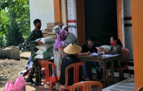 Pati – Hari ini waktunya warga Dukuh Pandahan, Desa Tamansari, Kecamatan Jaken, Kabupaten Pati, mengambil Bantuan dari pemerintah bagi yang berhak menerima ditempat yang telah di tunjuk dari Pemerintah Desa. Tampak Serda Sukarji sedang sibuk membatu warga penerima bantuan berupa beras 15 kilogram,